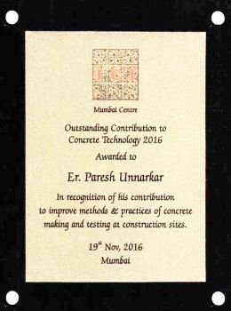 • In recognition for contribution to improve methods & practices of concrete making and testing at construction site.